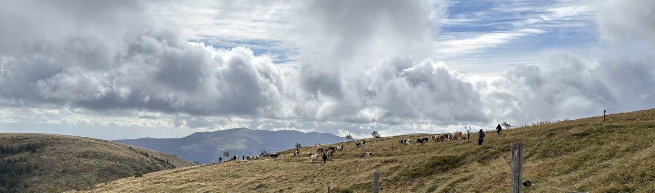 many cow bells ringing and soon saw a couple of men leading a herd of cows down